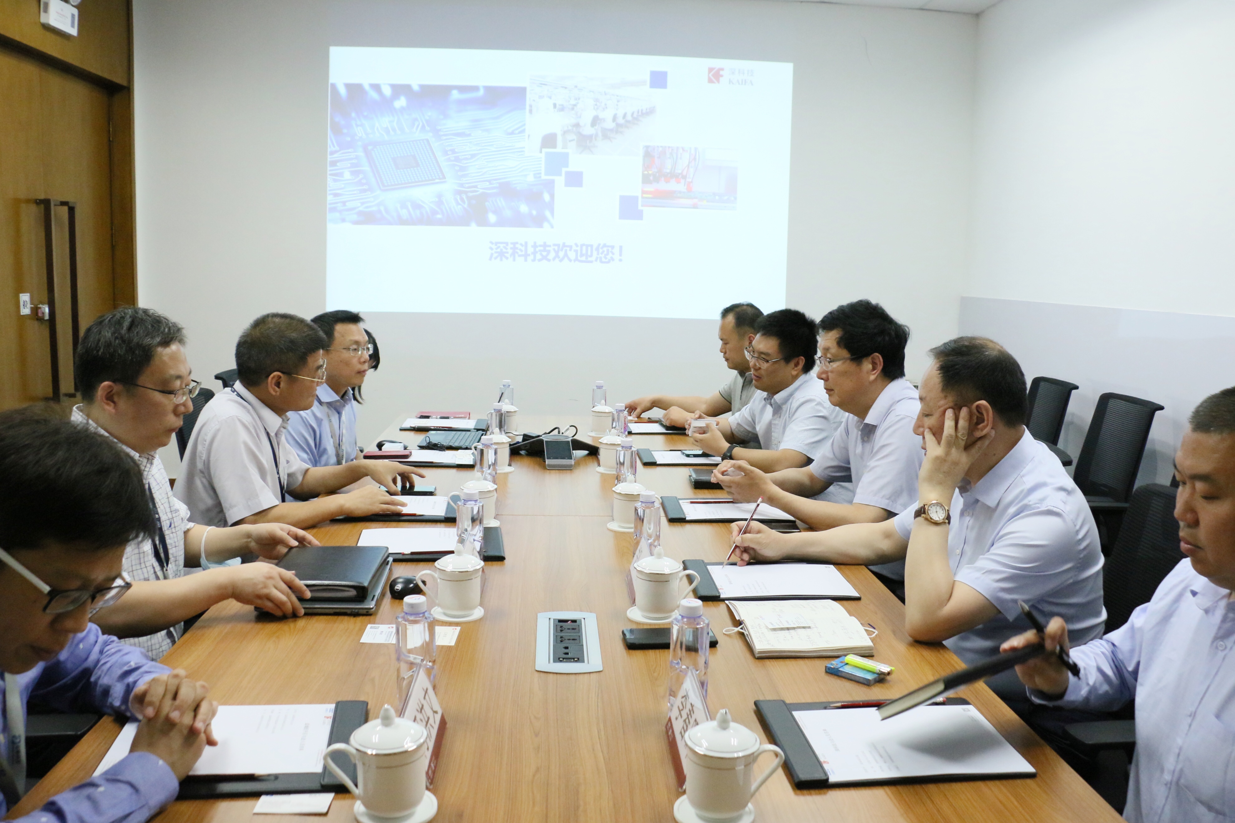 5月8日,江蘇省鹽城經(jīng)濟(jì)技術(shù)開發(fā)區(qū)主任王旭東率隊(duì)訪問深科技,簡要了解深科技的基本發(fā)展與產(chǎn)業(yè)布局情況,深入了解深科技封裝與測試技術(shù)及生產(chǎn)狀況。公司高級副總裁周庚申出席接待。