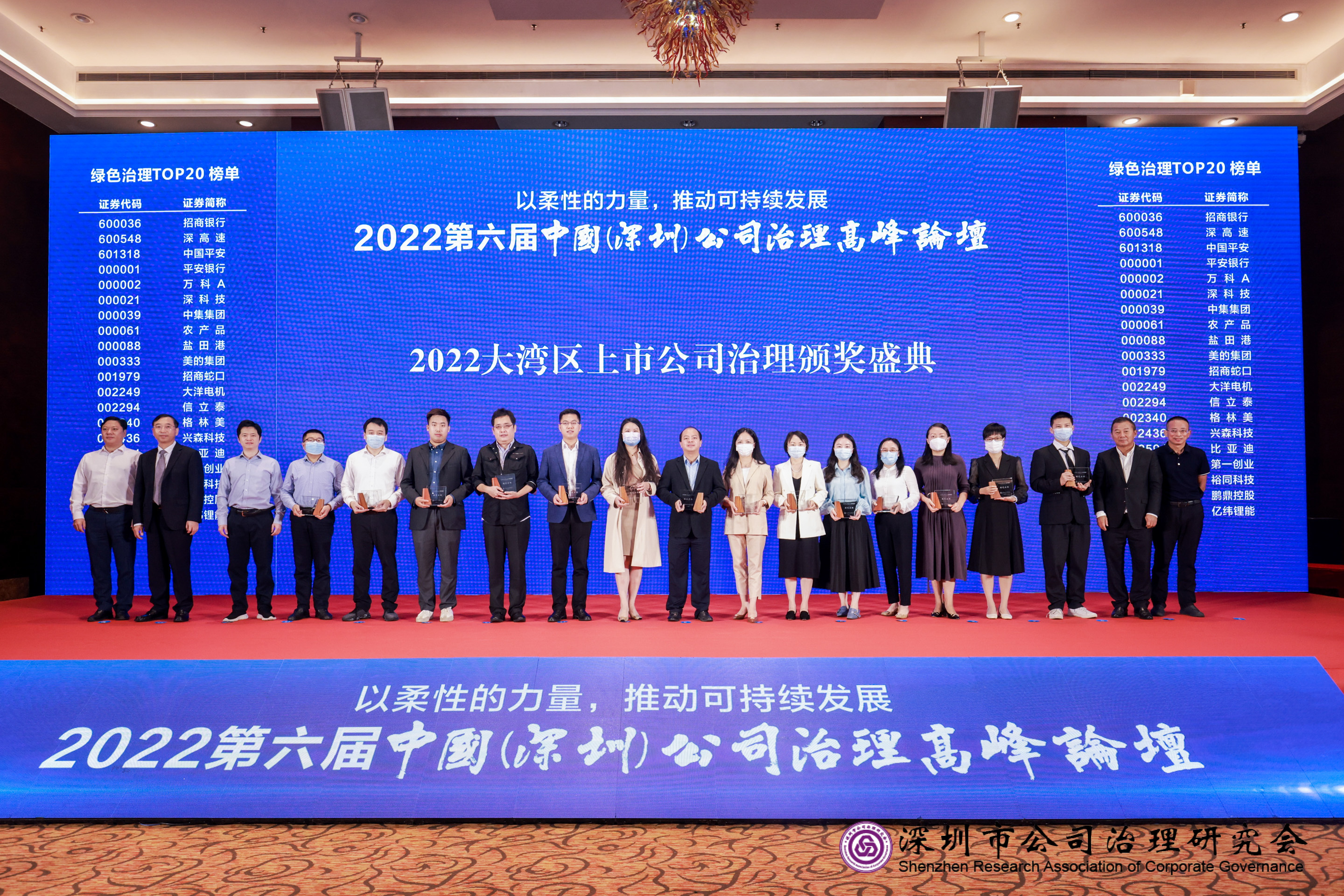 11月25日,由中國公司治理研究院、深圳證券交易所、深圳市地方金融監督管理局、福田區人民政府指導,深圳市公司治理研究會主辦的第六屆中國(深圳)公司治理高峰論壇在深圳舉行。深科技以出色的公司治理實踐,榮膺“2022大灣區上市公司綠色治理Top20”獎項。