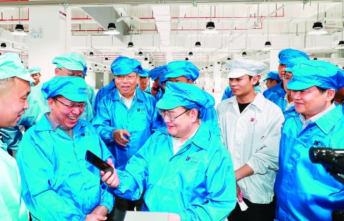 8月15日,在鹿心社、趙樂秦、秦春成等見證下,剛剛建成投產的桂林深科技智能制造產業園一期生產線成功下線第一部手機。